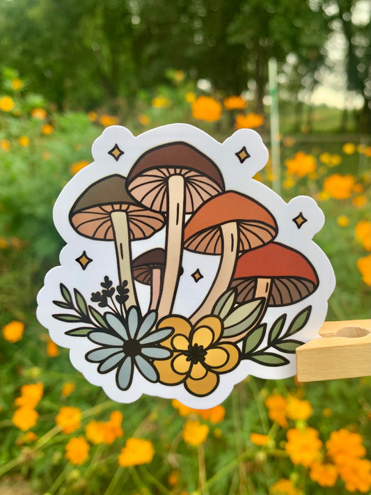 Brown Mushrooms and Flowers Sticker
