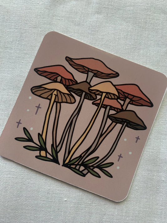 Brown Mushrooms with Cross Sticker